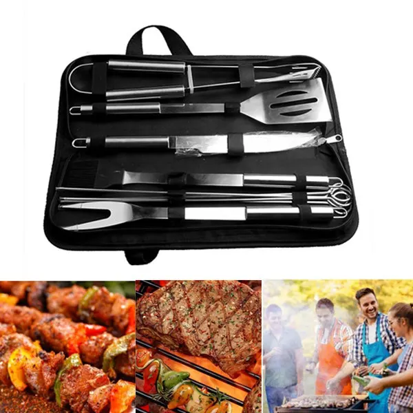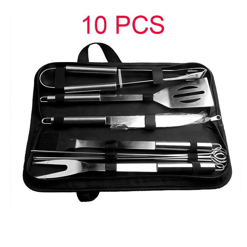 BEST QUALITY 10 PCS High Quality Stainless Steel Barbecue Grilling Tools Set Portable BBQ Accessories Tools Dura